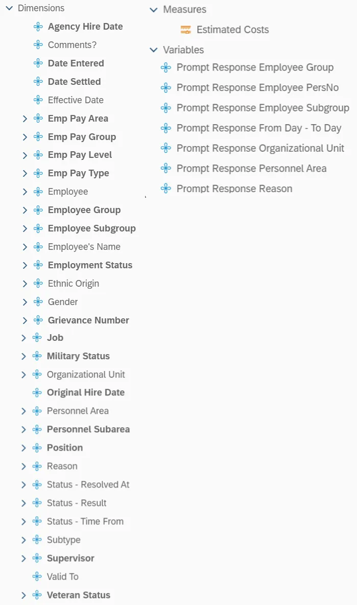 This is a list of the available objects that can be added to the report, from the Document Dictionary once in the Design mode: