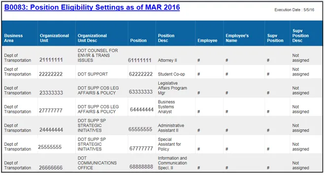 • This Report can be used to answer questions such as which positions are eligible for Overtime Comp Pay.