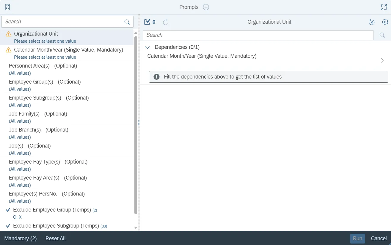 - Personnel Area(s) - Optional