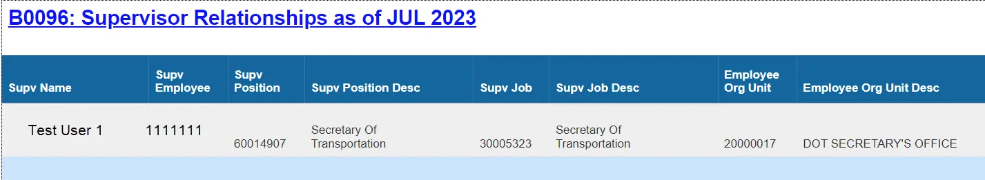- This report can be used to verify supervisor and employee relationships for positions assigned to the supervising position.