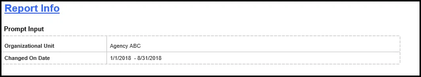 The Report Info tab displays information about the prompts entered.