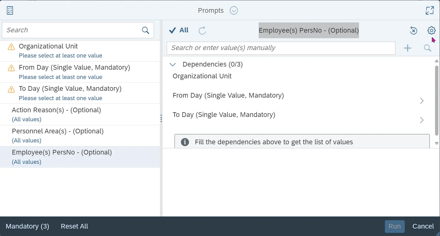 - Employee(s) PersNo - (Optional)