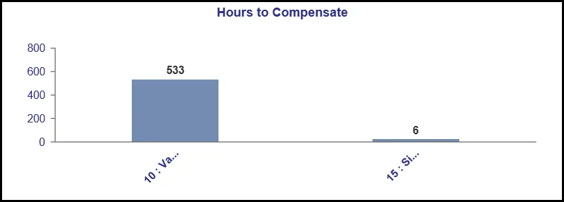 - Column Chart showing Hours to Compensate counts by Time Type Group.