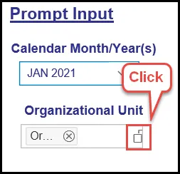 If the Calendar Month/Year prompt is chosen outside this calendar month range, the report will show warning error indicators in the dashboard. There are 4 steps to complete this process.