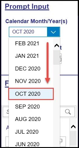 - Calendar Month/Year(s): The default value is set to current month. The value can be changed by using the dropdown arrow.