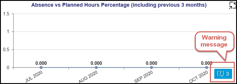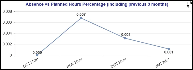 - Line Chart showing Absence vs Planned Hours Percentage for the month run plus previous 3 months.