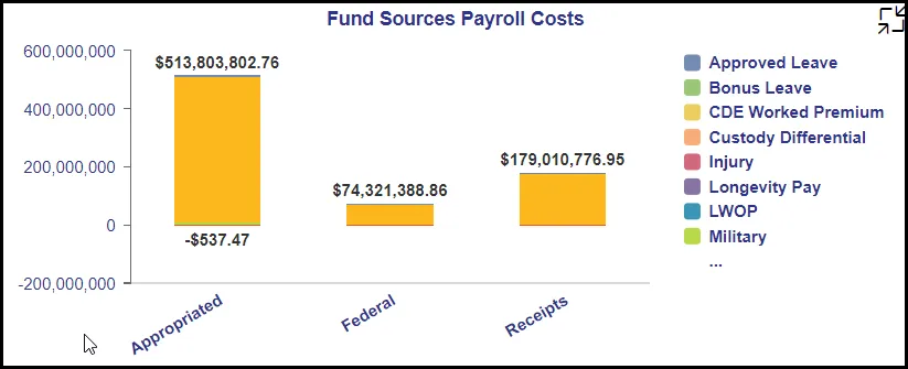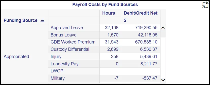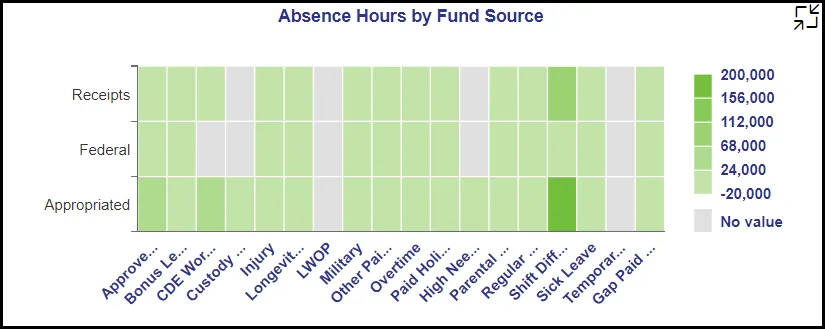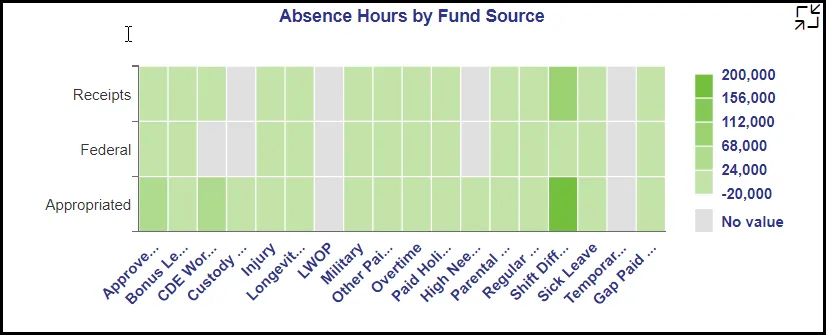 The value of the data provided here allows agencies to tie attendance and absence hours back to actual payroll costs, which are broken out by various dimensions that allow for further details as described below.