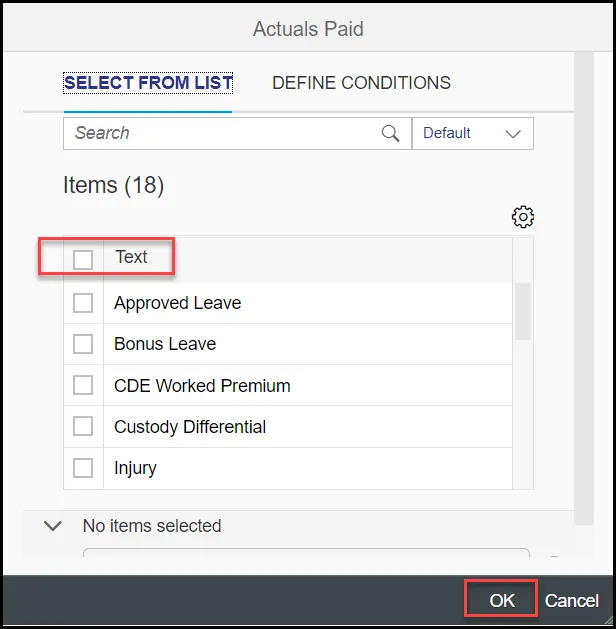 - OR choose ‘Actuals Paid’ dimension filter and select ‘Injury’ from the list of values.