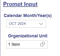 - Calendar Month/Year(s): The default value is set to current month. The value can be changed by using the dropdown arrow.