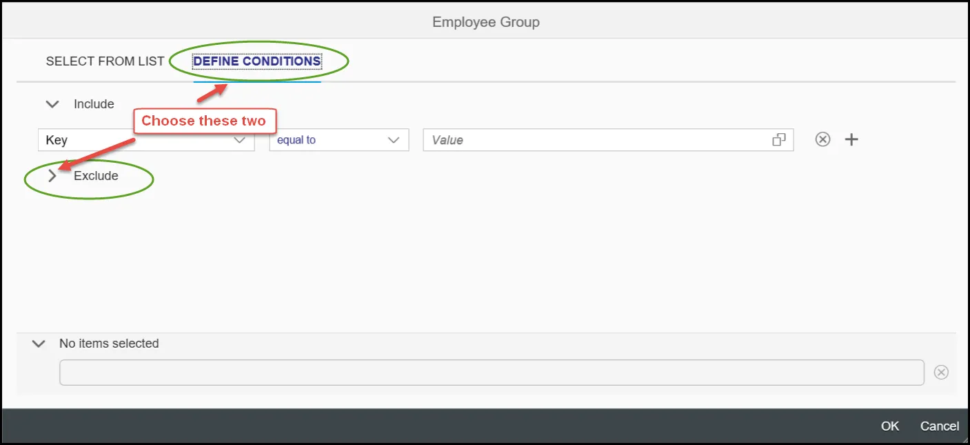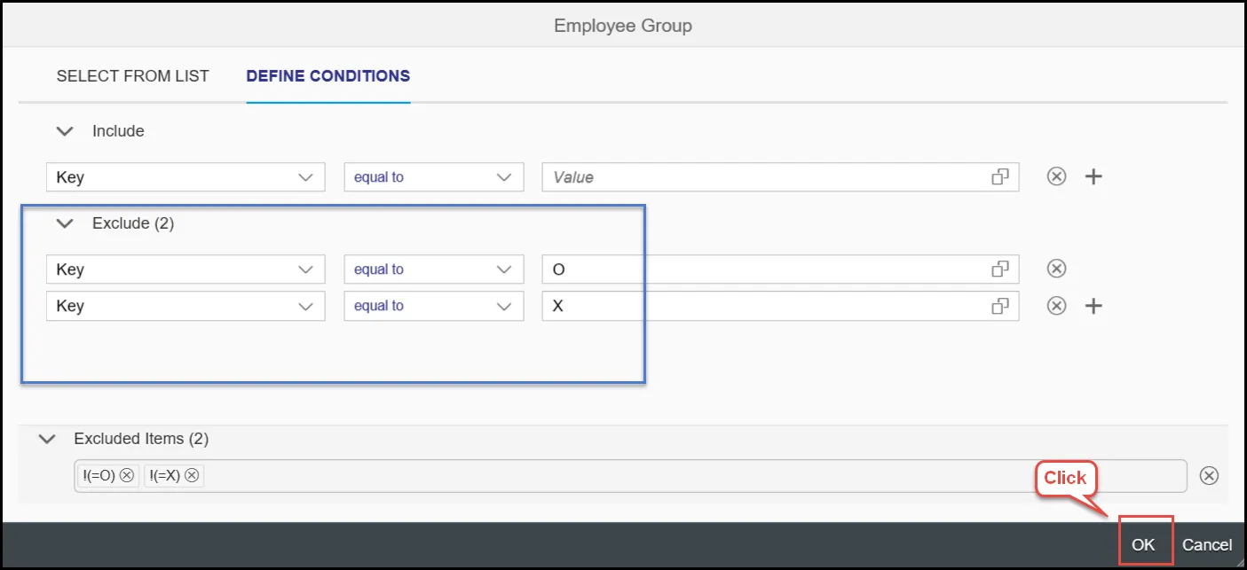 Step 2: Choose ‘Define Conditions’ Tab and then expand the ‘Exclude.’