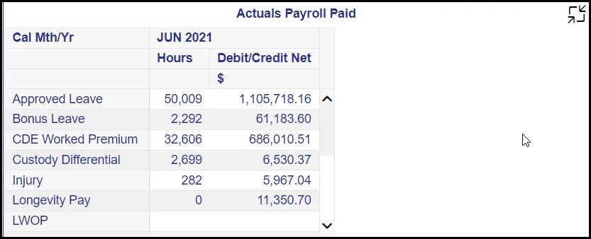 A sample use case to validate ‘Injury Leave’ payroll actuals in both the reports: