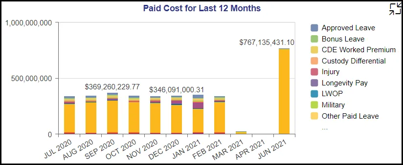 - This dashboard provides leave and actual hours paid analytics in easy-to-read graphs and charts.