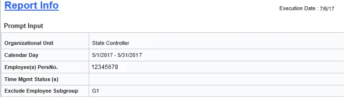 • Infotype 2001/2002 records that cover a range of dates are parsed into separate days based on the employee's work schedule. This report automatically applies to a condition to suppress the display of the rows where the difference between the employee’s 2001/2002 time entered and the CATS approved time is 0.