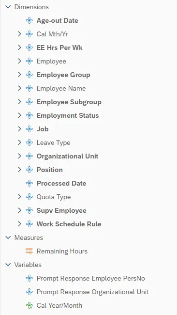- Report only shows liability leave quota from infotype 9901, subtype 7000.