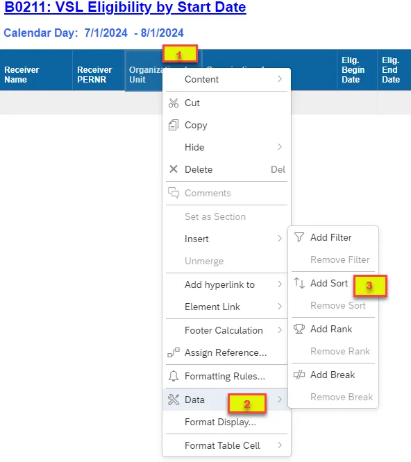 Step 3: Right Click “Add Sort”.