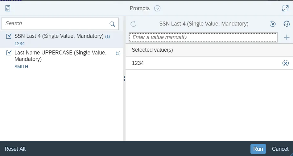 - SSN Last 4 (Single Value, Mandatory)