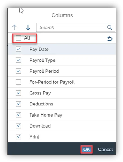 Step 18. Click the various fields to select or de-select columns to display and click OK.