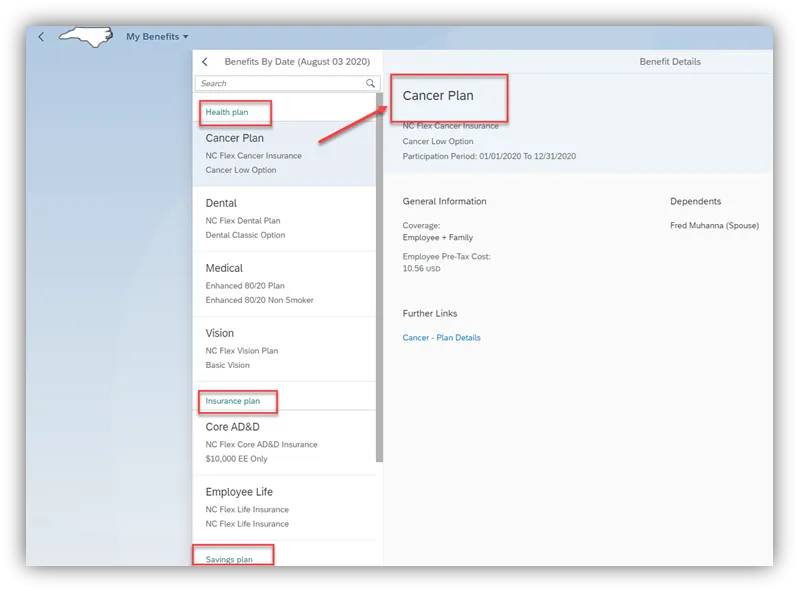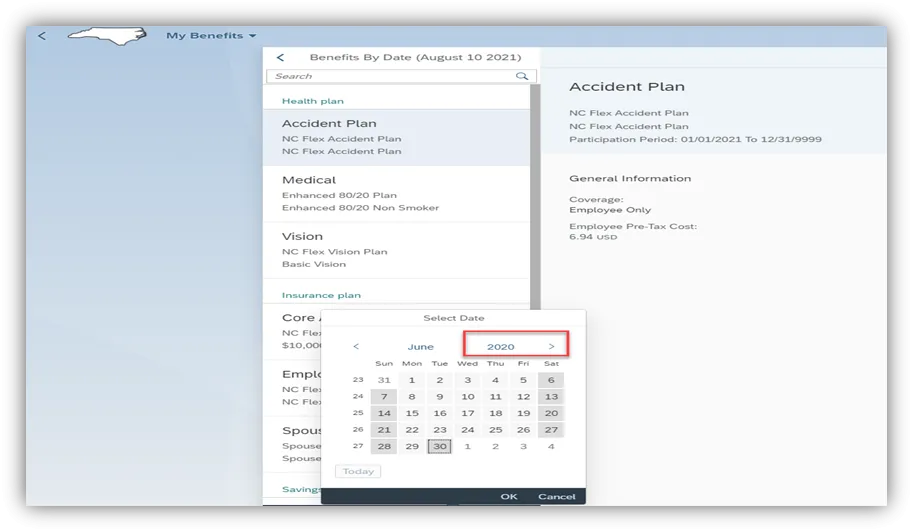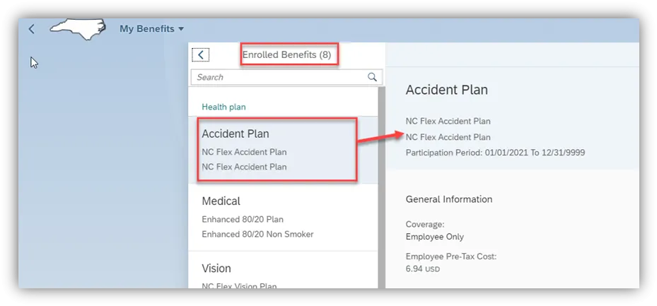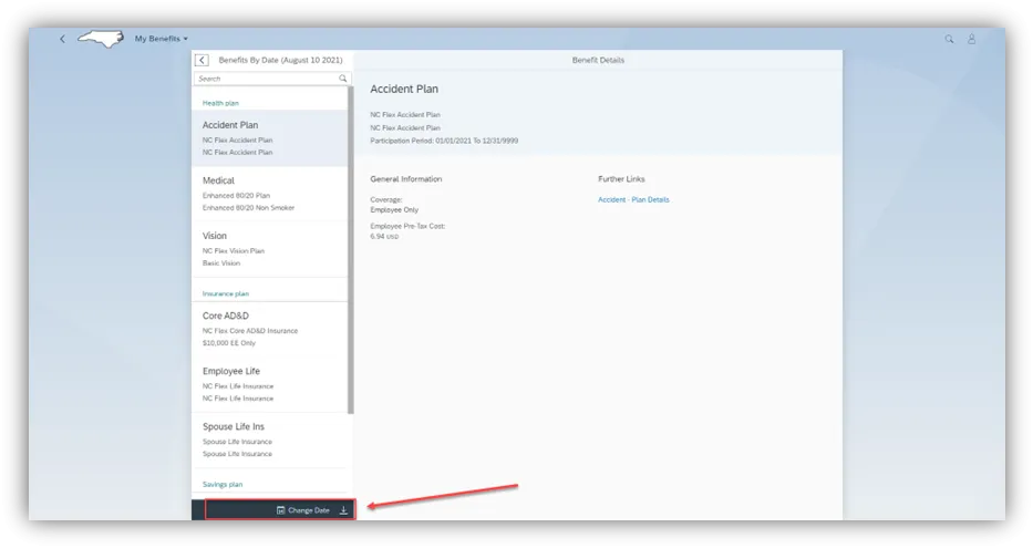Step 12. When the screen refreshes, it will display the benefits that you were enrolled in as of the date you selected.