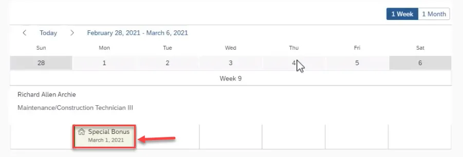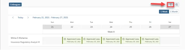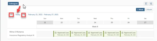 Step 9.    The Colleagues feature is not activated. You can use the 1 Week/1 Month toggle to navigate with this screen.