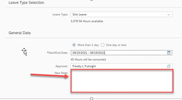 Step 23.    Under New Note, you can add an optional note about the leave request.