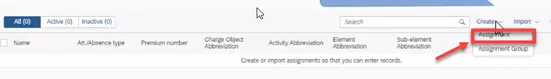 Step 31. There are now three different assignment we can assign to a group. To create an Assignment Group, click Create and click Assignment Group.