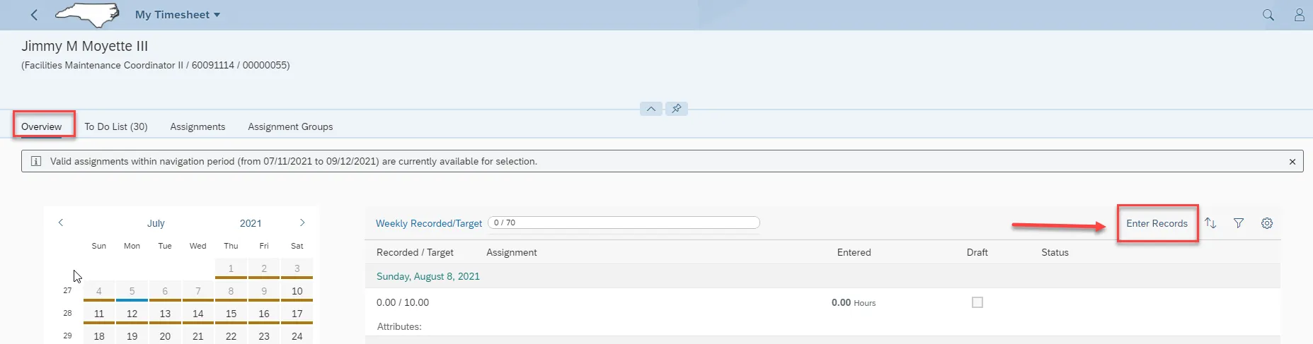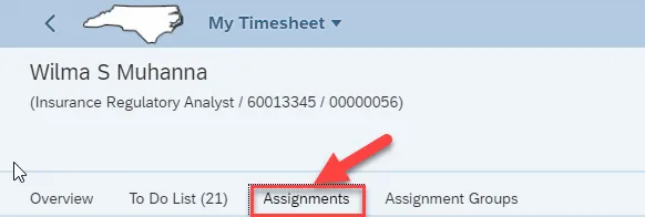Step 3. All Time entry is completed within Overview. Click on Assignment.