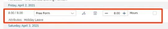 Step 12. Notice the attributes. This is helpful to the manager who will see these when approving time.
