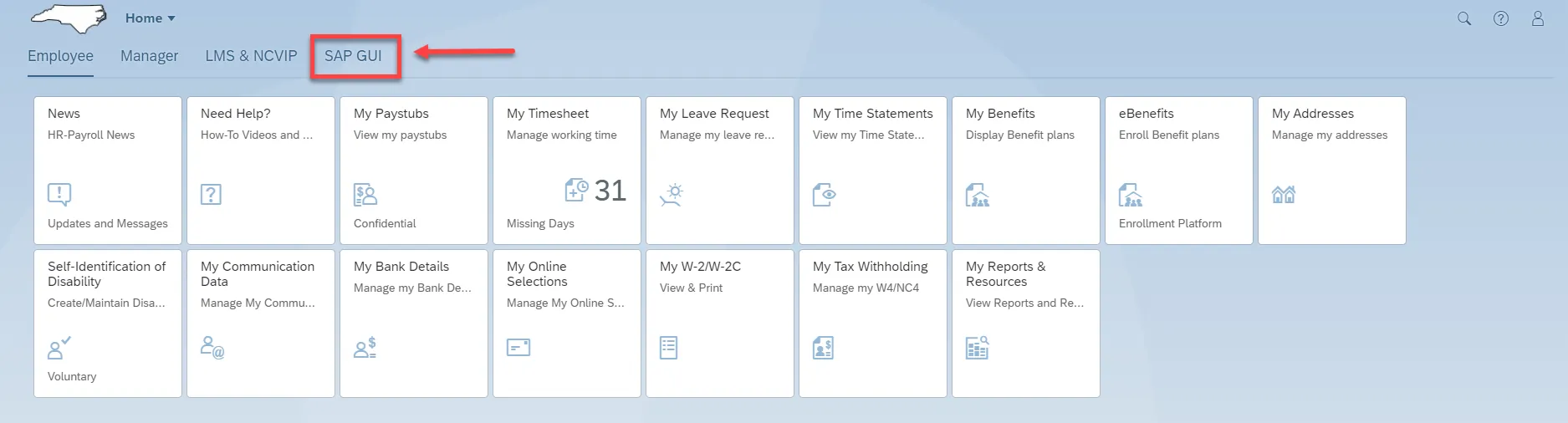 Step 1. Find and select the SAP GUI tab at the top of your screen.