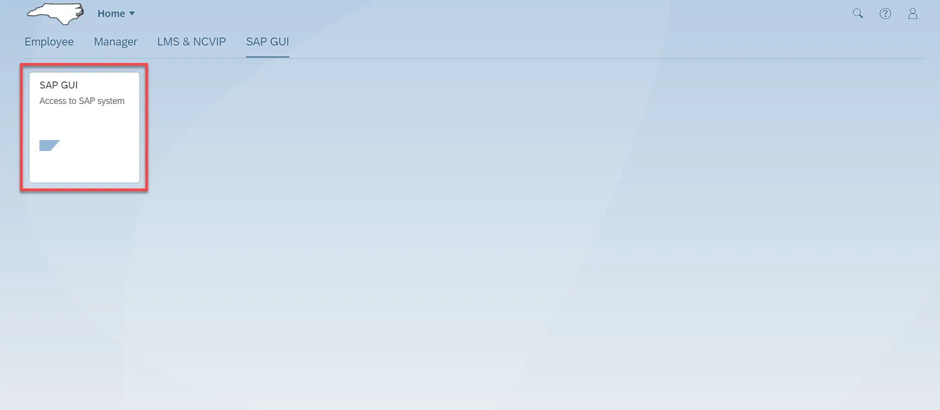 The SAP GUI application is a single application/tile on the SAP GUI landing page.