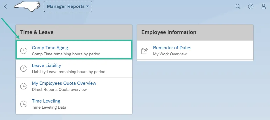 To access the Comp Time Aging report, click on the Manager’s tab and then click on the Manager Reports tile.