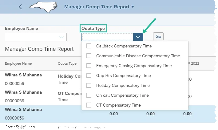 In the below example, Wilma and Tony both have Holiday Compensatory Time. Wilma & Tony have 8 hours remaining for the respective periods; June 2022, August 2022 and October 2022 for an accumulative 12-month total remaining hours equal to 24.00. (Several months with 0.00 hours have been cut from the screen shot for visibility purposes.)