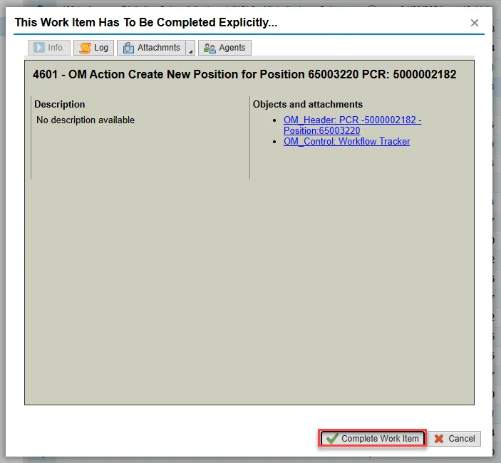 Step 15. Click the Complete Work Item button in the pop-up.