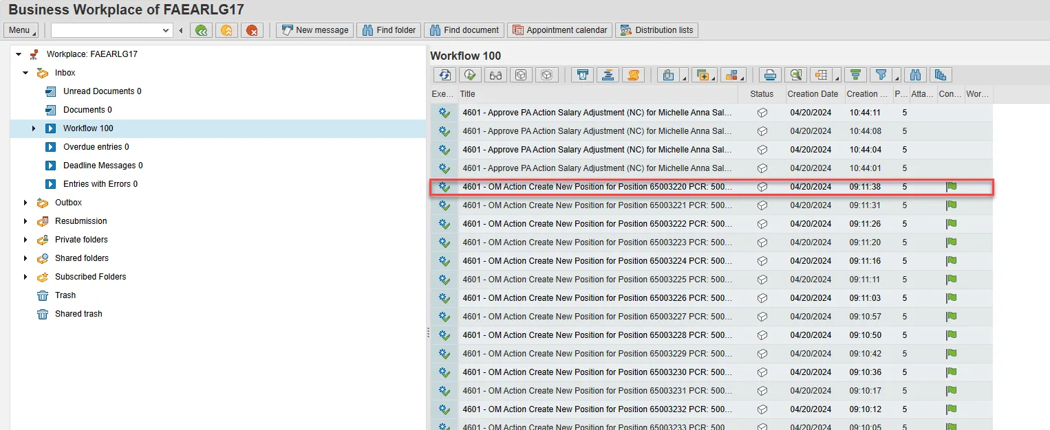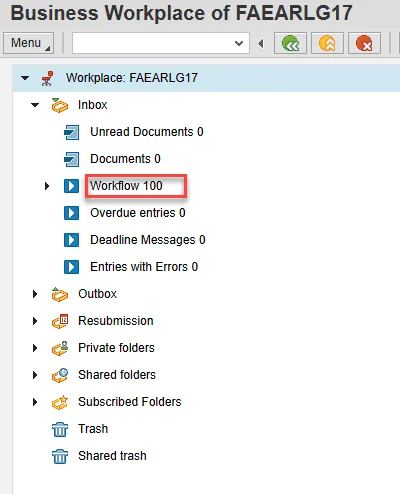 Step 1. On the SAP Easy Access screen, click the SAP Business Workplace (Ctrl+F12) button.