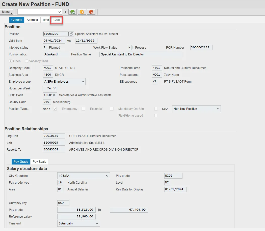 The Fund Approver must approve a PCR for the creation of a new position that requires the Cost Distribution infotype to be created/updated.