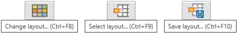 There are three Layout functions that are used: Change layout, Save layout, and Choose (or Select) layout. Sometimes these functions have their own unique button, as such: