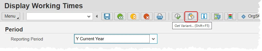 Begin by running the desired report in the Integrated HR-Payroll System. Instead of filling in the data fields, click the Get Variant button in the toolbar.