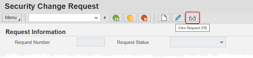 You can view the status of a security role request at any time, by using the View Request button. Click the button, enter the Request Number and press Enter on your keyboard. The status of the request will be displayed.