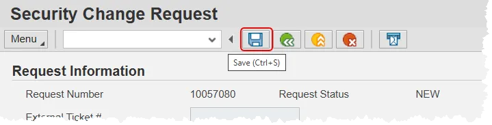 Step 5. Once all the desired Security Roles have been entered, save the request with the save button.