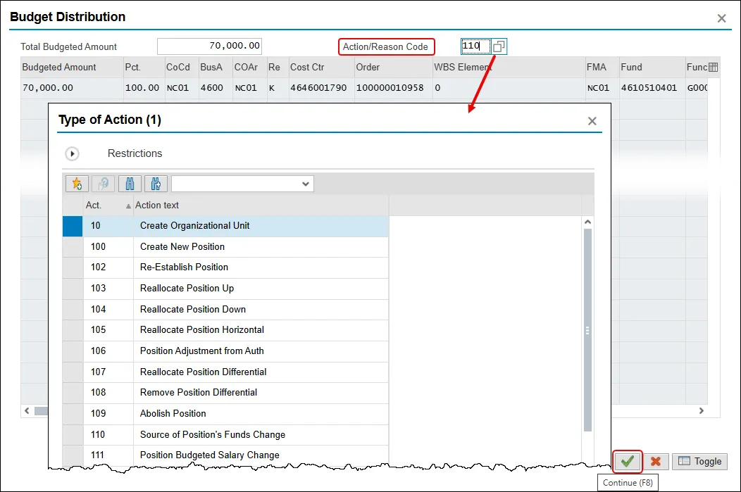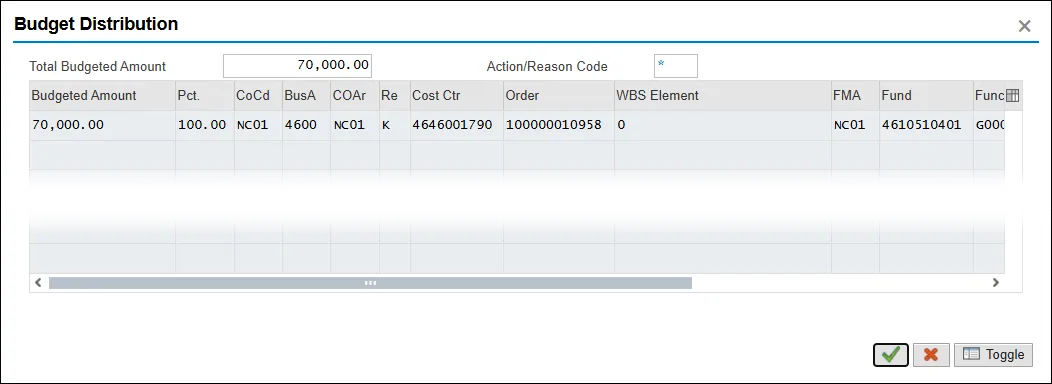 Step 10. Click the Enter key. The Budget Distribution pop-up will appear.