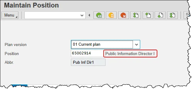 Alert! Be vigilant on this step. A position number may be present already when you access the transaction, so be sure to review the position number and name to ensure they are correct.