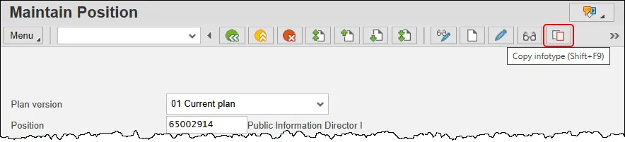 Step 5. Click the Copy infotype button. Using the copy button will delimit the previous record and ensure that history is retained.