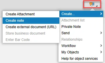 Step 10.    Optional step: Include a note.  Click on the right side of the Services for Object button. In the resulting drop-down menu, hover over the Create option and then choose Create Note.
