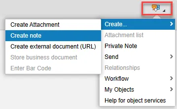 Step 12. Optional step: Include a note. Click on the right side of the Services for Object button. In the resulting drop-down menu, hover over the Create option and then choose Create Note.