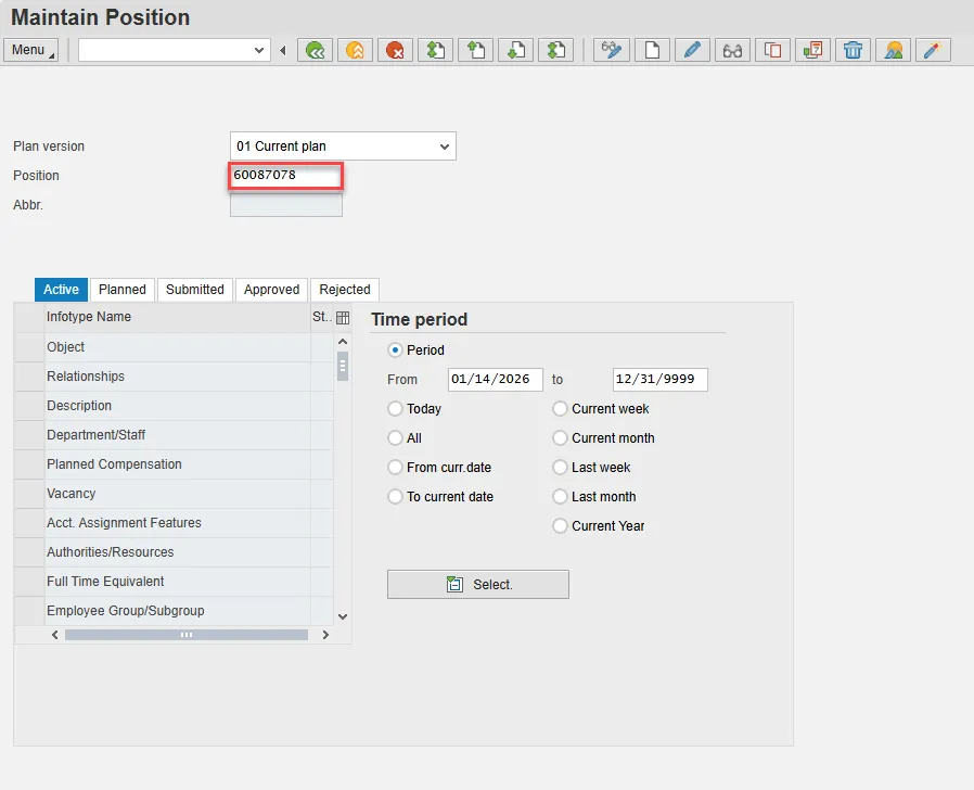 Step 2. Input the position number that needs updating. This document will use 60087078 from the OSC training environment.