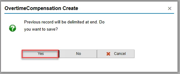 Step 7. Click the Save button. If updating a record, click Yes to delimit the previous record. No pop-up will appear if there was no previous record.