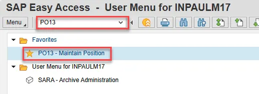 Type PO13 in the command field (1). Hit enter on your keyboard (2). Also, you can double click it from your favorites folder if you’ve previously saved it there (3).