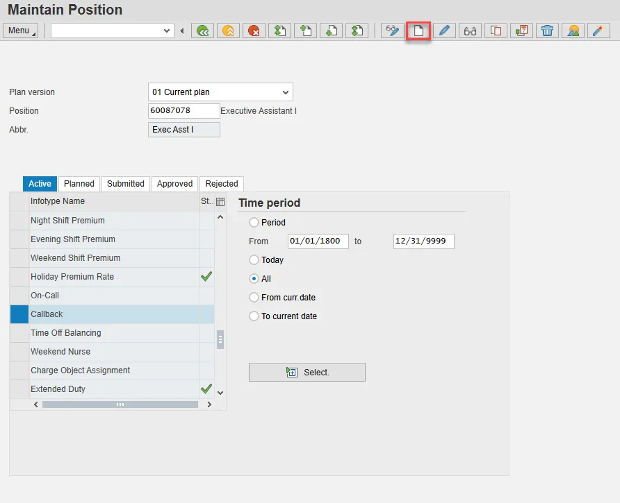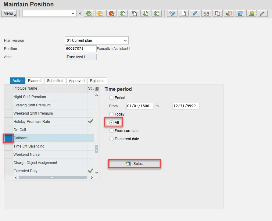 - Scroll down the list of position infotypes and click the square in front of the Callback row. There may or may not be a green check already present.