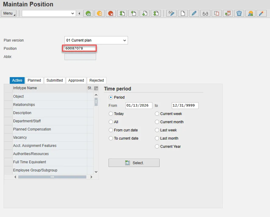 Step 2.    Input the position number that needs updating. This document will use 60087078 from the OSC training environment.