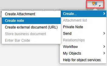 Step 12.    Optional step: Include a note.  Click on the right side of the Services for Object button. In the resulting drop-down menu, hover over the Create option and then choose Create Note.