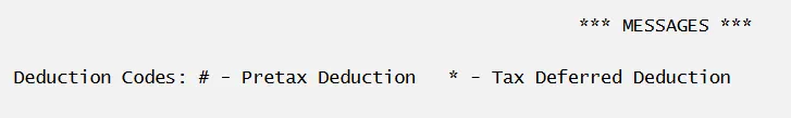 Total Deductions is the sum of total health insurance deductions and total other deductions. Each deduction may have either an * or # deduction code to the left of the deduction name: